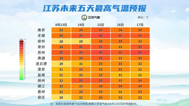 在过去的三天中,江苏有许多风暴。天气到13日结束时增加。该省的温度将再次升高。请做得很好,以避免加热和冷却,以避免在下午放出。从8月13日的20:00到8月12日至20:00,整个省都在阴云密布,大多数地区都会散布淋浴或暴风雨。其中,河流和江岛地区某些地区的雨季是中等的,当地的大雨是本地的。最高温度:32-33℃与长江和江苏南部一起,在北部的北部约28°℃,在其他地方约31℃;最低温度:在该省东南地区的26-27℃,在Huaibei的23-24°,在其他地方约25℃。该省的东风大约是4级,在风暴地区的特雷斯特(Thestors)期间的短期阵风为7-9级。从8月20:00到8月14日的8月13日至20:00,Huaibei地区在阵雨或暴风雨中多云,中度降雨,L大雨,在其他地方多云。最高温度:大约34℃包括长江河和江苏南部,在北部的Huaibei大约30℃,在其他地方约32℃;最低温度:24-25℃包括Huaibei和Huaibei,在其他地区为26-27℃。该省的东南风,风力:沿河和江苏南部的4-5级的阵风为6级,在其他地方为4级,在有暴风雨的地区的风暴中,在7-9级的短期阵风中。从8月14日的20:00到8月15日的20:00,Huaibei地区多云,阵雨或风暴散落,其他地区则在阳光明媚。最高温度:江苏南部的34-35℃,在其他地方约33℃;最低温度:在Huaibei和Jianhuai之间的东侧约25℃,在其他地方26-27。该省的东南空气约为4级,在风暴中飓风期间的短期阵风为7-9级。 来源|姜u气象学